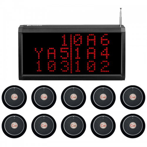 EuroCall éttermi pincérhívó rendszer csomag, nagy fali kijelzővel, 10db vízálló gombbal